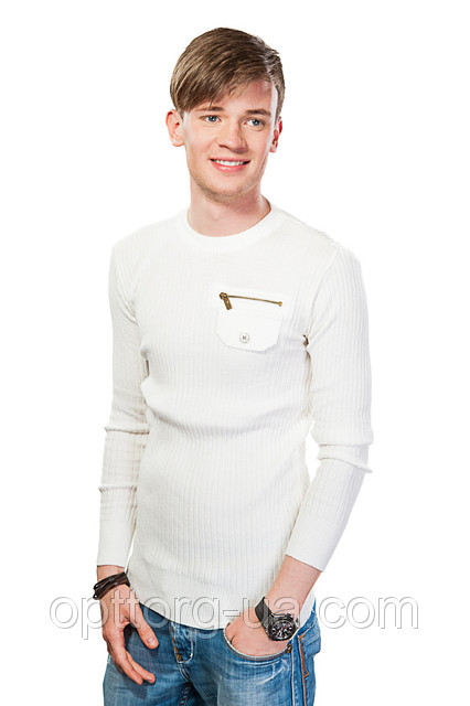 Состав 23 % полиамид, 69 % вискоза 8 % эластан. Пр-во Турция. LEE ECOSSE. Свитер мужской. На левой стороне груди кармашек обманка с хлястиком., над корманом змейка. На правой стороне в доль изделия надпись фирмы. Цвета. Белый. Р-ры L