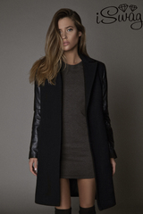 Пальто с кожаными рукавами
