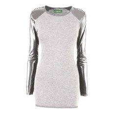 Платье с рукавами из натуральной кожи и шипами на плечах.
