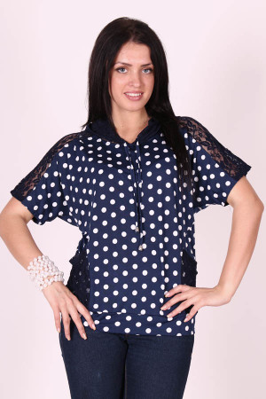 Эта великолепная блузка очень оригинально и эффектно смотрится благодаря своему интересному дизайну. Изделие с короткими рукавами декорировано гипюровыми карманами и капюшоном.