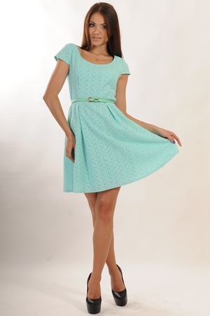 Платье из благородной прошвы в цвете мята станет вашей любимой моделью этим летом. Расклешенный низ длиной до колена, небольшой рукав и квадратный вырез горловины, сзади потайная змейка. Полностью повторяет модель платья второй нижний слой, подкладка выполнена из легкой натуральной ткани - батист.