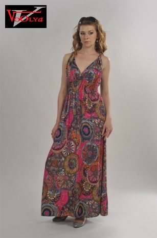 Летний, романтичный сарафан с V-образной горловиной. Резинка на талии подчеркивает её, длинна в пол придает загадочности. Ткань штапель.