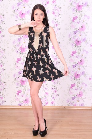 Шифоновое платье на кулиске с ультра модным принтом, в виде крестов. Объемный верх и свободная юбка. Талия подчеркнута при помощи тонкого пояса. Наряд подчеркнет индивидуальность и непринужденность.