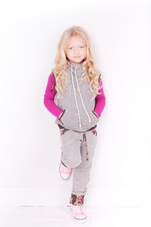Жилет с карманом "кенгуру", с металлическим лого, воротник-хомут со шнурком.Внизу изделия-манжет.