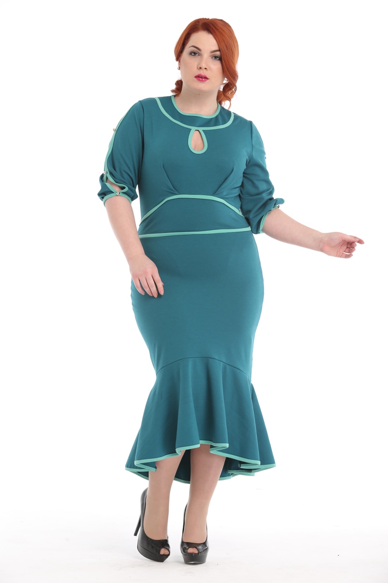 Платье годе,на груди вырез в форме капли,на талии широкая вставка от которой к верхней части расположены защипы,рукав с вертикальным разрезом закреплены в двух местах декоративными пуговицами.