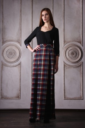Дополнительно: Платье длиное в пол клетка синяя. Потайная молния на спине. Карманы в швах