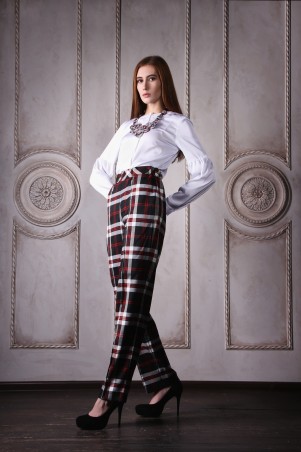 Дополнительно: Брюки клетка черно-белая. Потайная молния сбоку. Карманы.