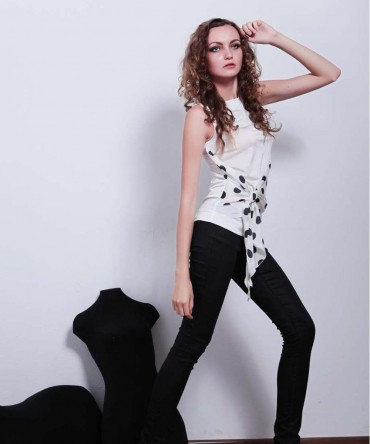 Дополнительно: Блуза белого цвета с завязками по бокам.