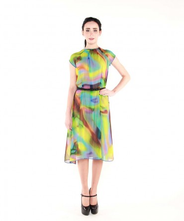 Дополнительно: Платье с подкладкой из трикотажа телесного цвета и верхним слоем цветного шифона. Свободного кроя.