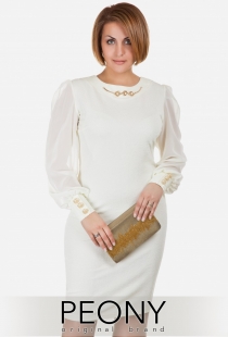 Это настоящий шедевр! Платье-футляр из изысканной фактуры, цвета драгоценных камней. Шифоновые рукава добавят Вам лёгкости и нежности. А романтически завязанный бант из шифона, украсит V-образный вырез на спинке. Маленькие жемчужинки на манжетах и горловине, сделают это платье настоящей изюминкой в Вашей коллекции. Добавьте образу клатч, расшитый золотым бисером или паетками и туфли-лодочки или босоножки на тоненьких ремешках и смело отправляйтесь в театр или на вернисаж.