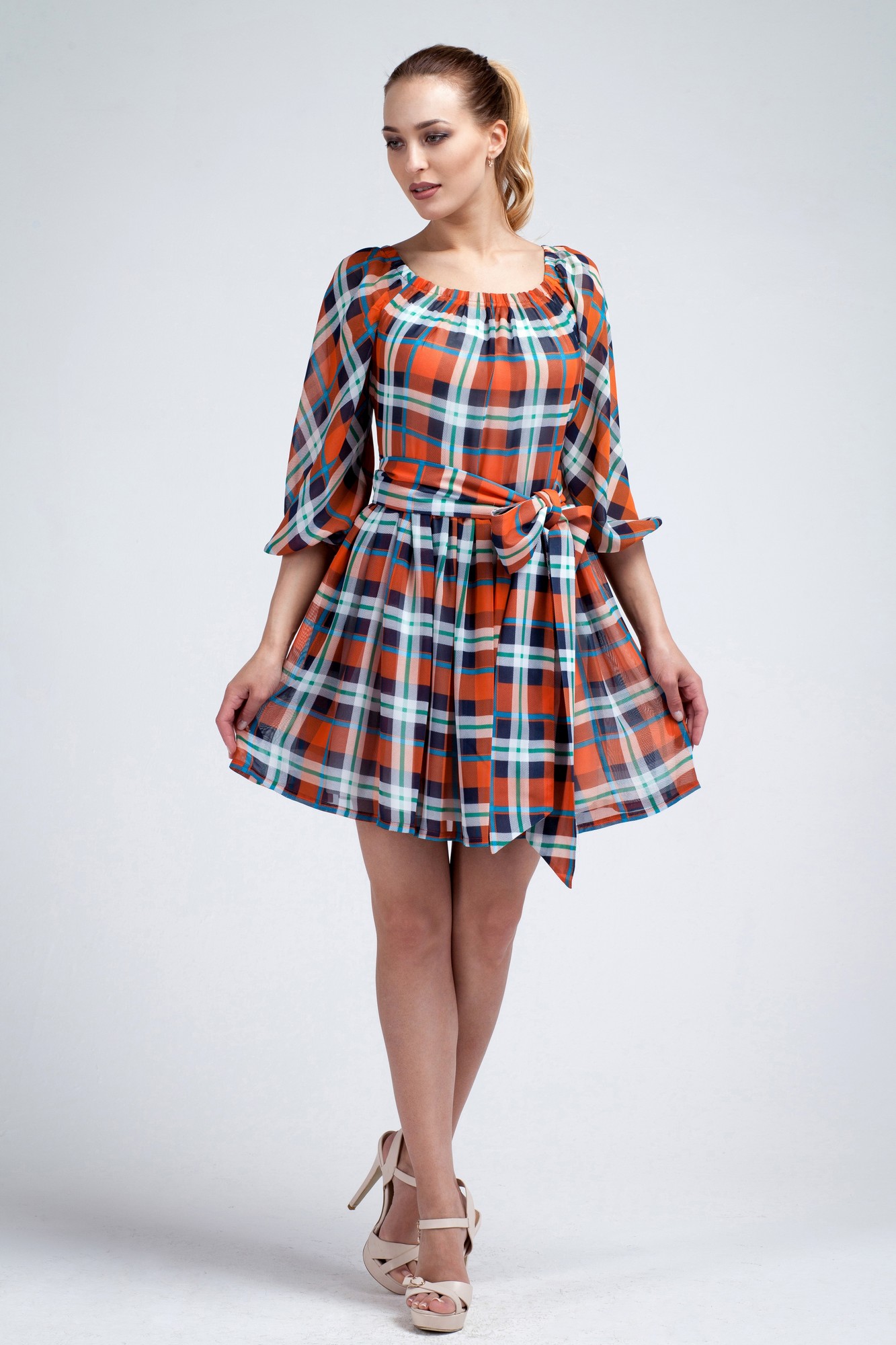 Полуприлегающего силуэта , с«потайной молнией» по среднему шву спинки , отрезное по линии талии, плотное прилегание (утяжку) образуют широкие, длинные пояса из основного материала; расширенная mini юбка с мелкими густыми складами, и широкими, раскройными по косой, рукавами. Сборка по переду от горловины «лодочка», с открытыми плечами, на эластичной ленте, шириной 2см.