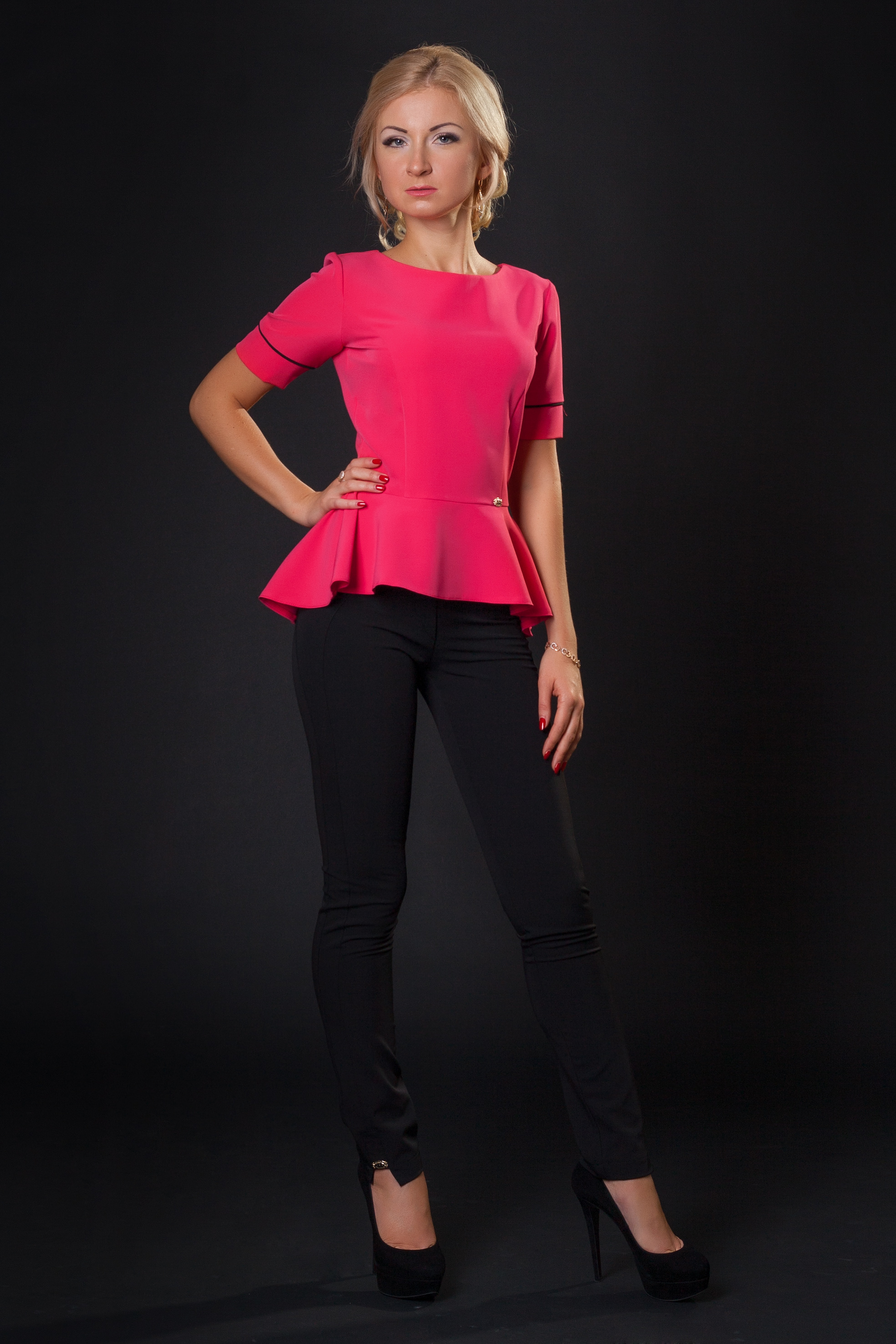 малиновый с чёрными брюками