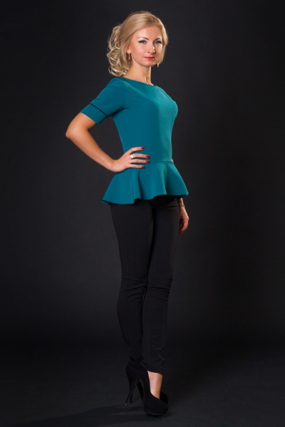 Материал: брюки - стрейчевый тиар; блуза - костюмный креп.