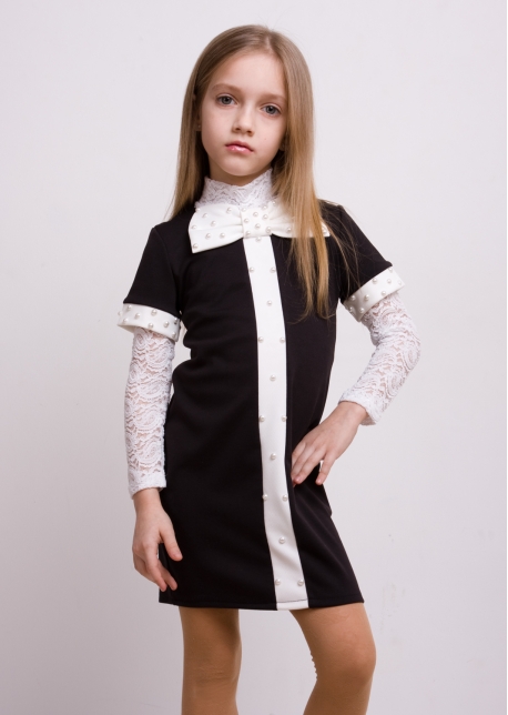 Детское платье "Бант" - стильное, праздничное платье для девочек, которое не оставит никого равнодушным и сделает ребенка центром внимания. Платье идеально подходит для детских утренников, дней рождений. Бант, планка и манжеты украшены половинками жемчужин, по центру спинки вставлена змейка.