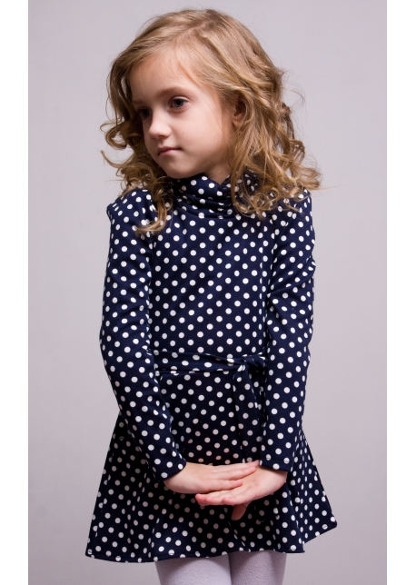 Горлышко присобрано на резинке, которая защищает ребенка от ветра. Платье с карманами для маленьких секретов. Дополняет платье изящный поясок.