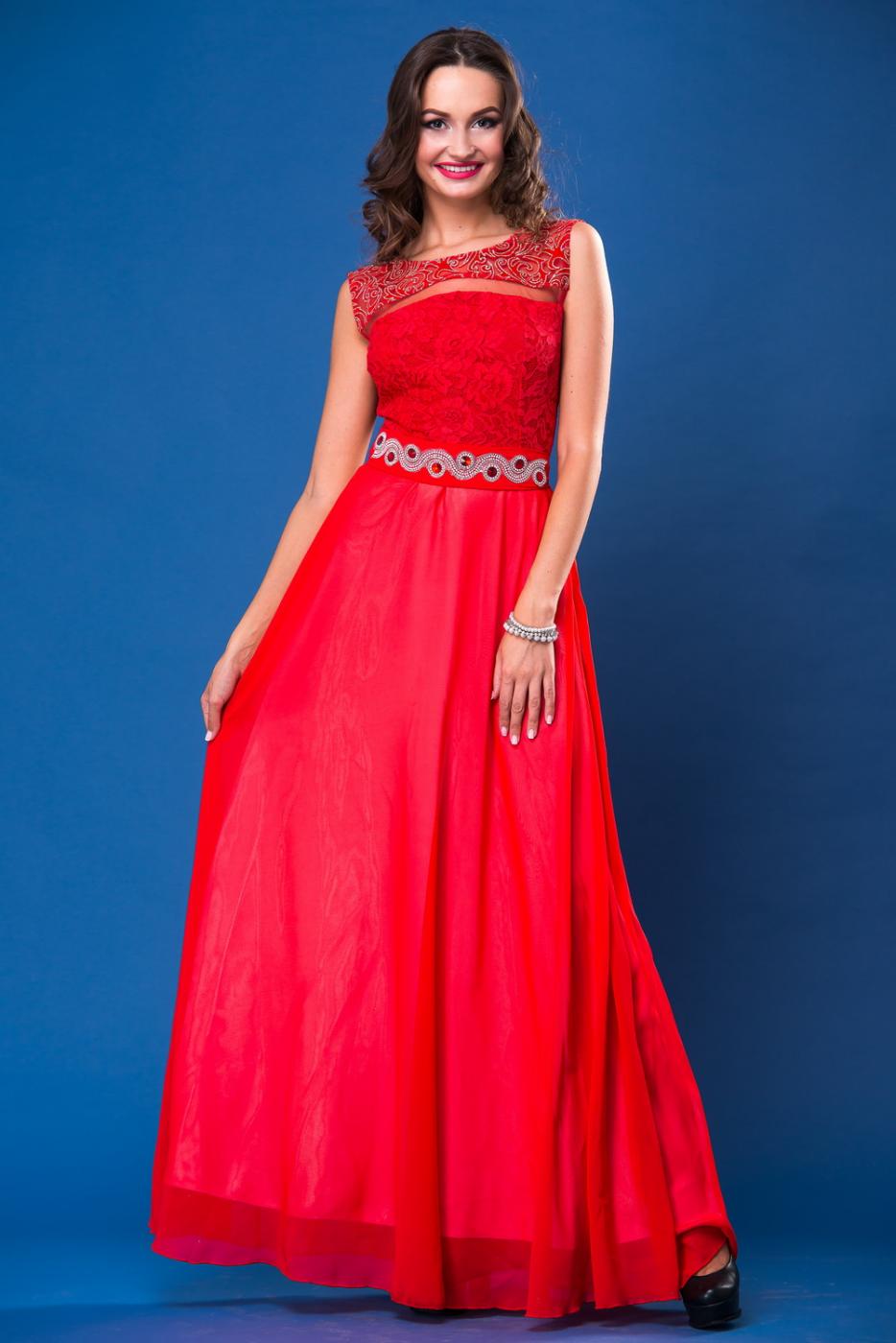Нарядное платье длиной "в пол". Оригинальная декорация верха. Юбка из воздушного шифона сделает Вашу походку легкой и летящей. Пояс расшит камнями.