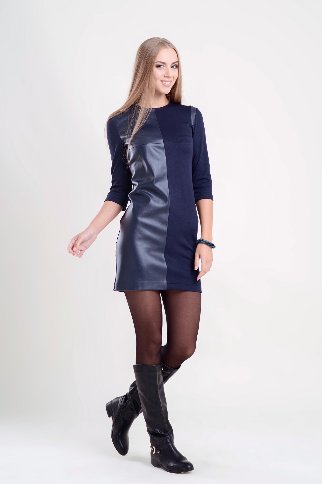 Соскучились за необычными и неожиданными дизайнерскими решениями? Присмотритесь к этому эффектному повседневному платью. Оно сразу же обращает на себя внимание слегка экстравагантным сочетанием костюмной ткани и искусственной кожи. К тому же, модель имеет очень удачный фасон. Полу облегающий крой выгодно преподносит достоинства фигуры и, в то же время, скрывает некоторые ее изъяны. Вы будете чувствовать себя максимально комфортно и привлекательно!