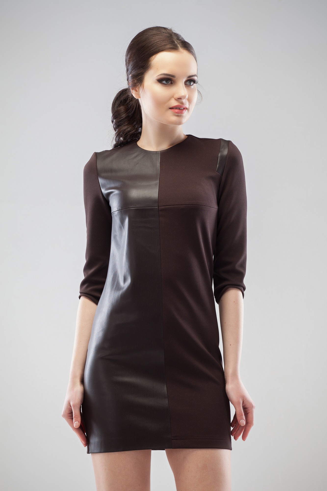 Соскучились за необычными и неожиданными дизайнерскими решениями? Присмотритесь к этому эффектному повседневному платью. Оно сразу же обращает на себя внимание слегка экстравагантным сочетанием костюмной ткани и искусственной кожи. К тому же, модель имеет очень удачный фасон. Полу облегающий крой выгодно преподносит достоинства фигуры и, в то же время, скрывает некоторые ее изъяны. Вы будете чувствовать себя максимально комфортно и привлекательно!