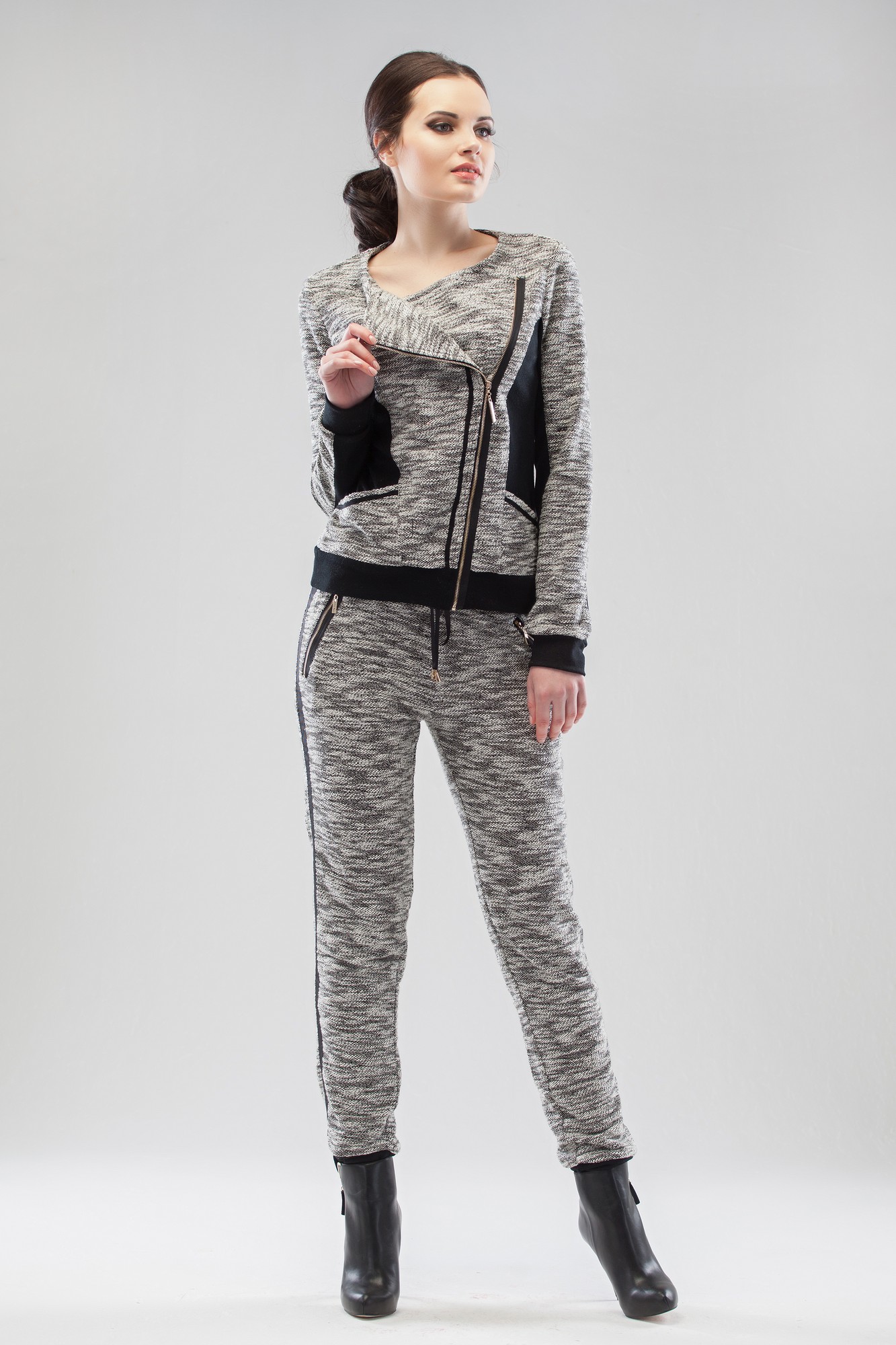 Костюм нарядный из сочетания двух трикотажных тканей, разных по фактуре - 2-х слойного трикотажа с тиснением и тонкого шерстяного трикотажа.