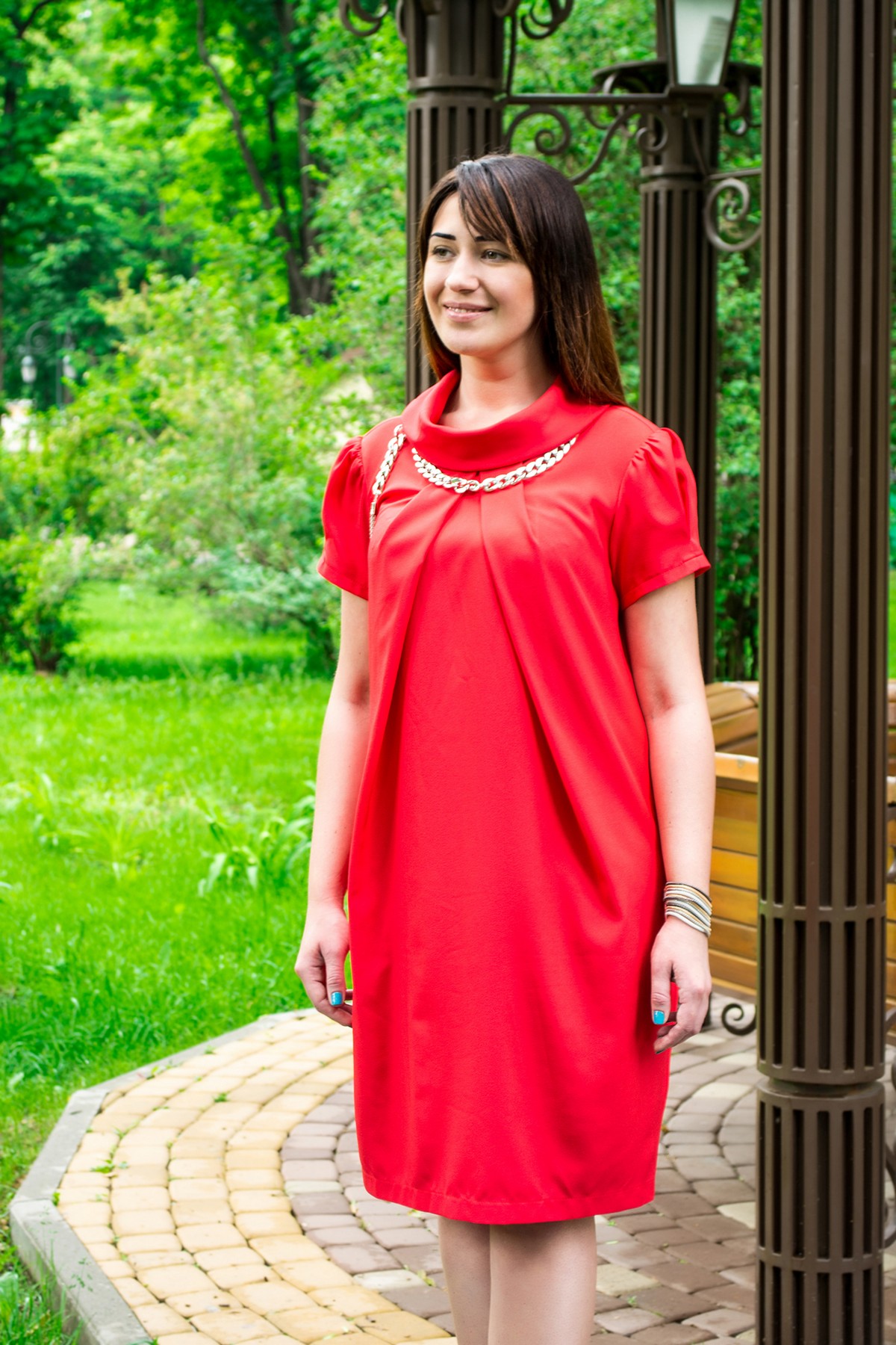 Платье нарядное свободно силуэта, слегка зауженное к низу, с коротким рукавом, длиной ниже колен из тонкой креповой ткани.