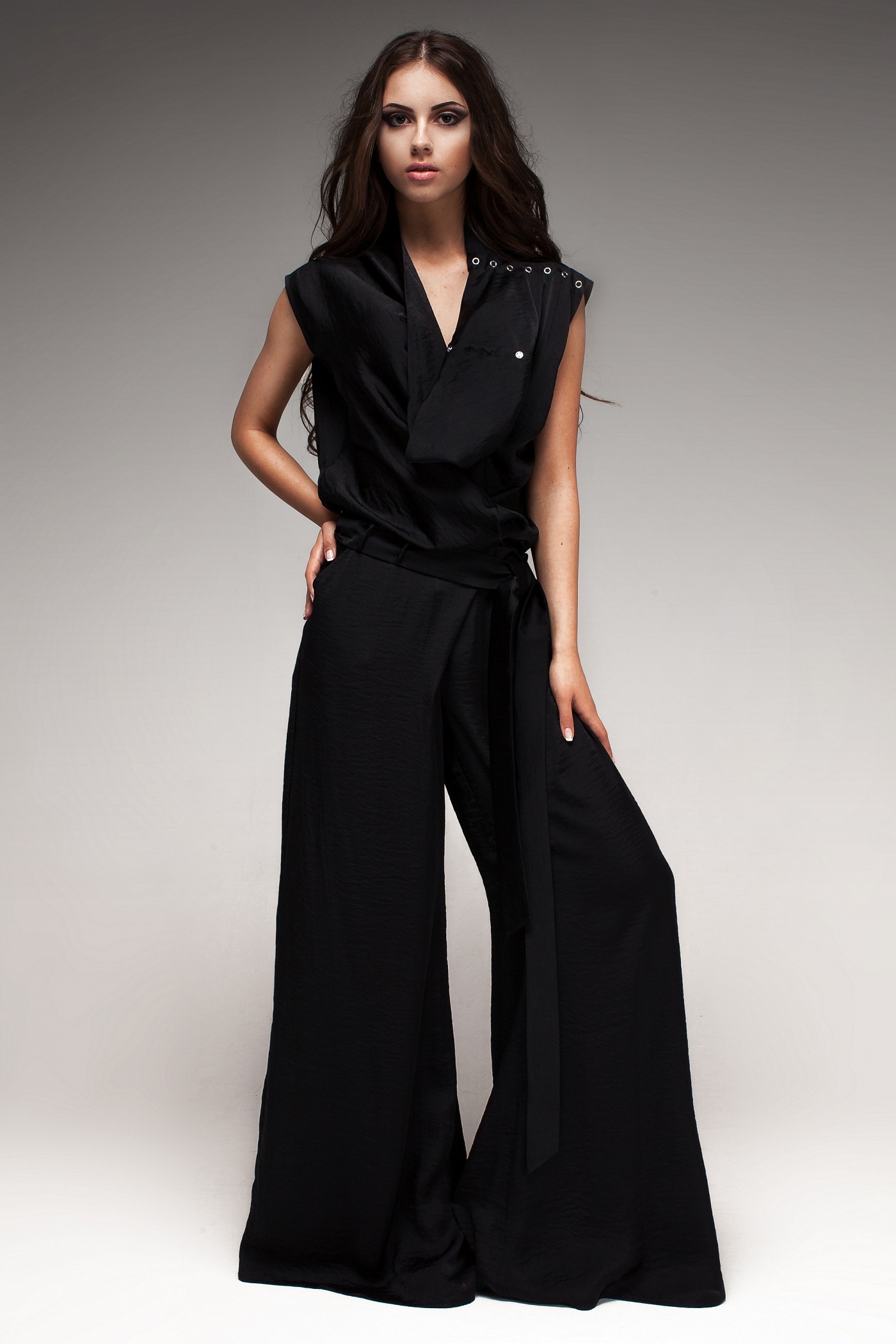 Нарядный комбинезон с вырезом-водопадом