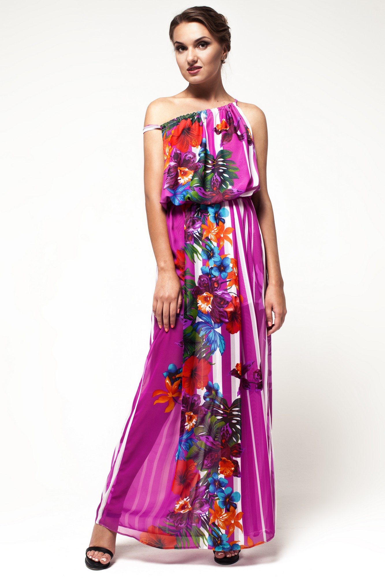 Трапецевидный силуэт. Легкий струящийся шифон ярких цветов. Свободного покроя с изменениями силуэта с помощью съемного шифонового пояса и кулиски по горловине.