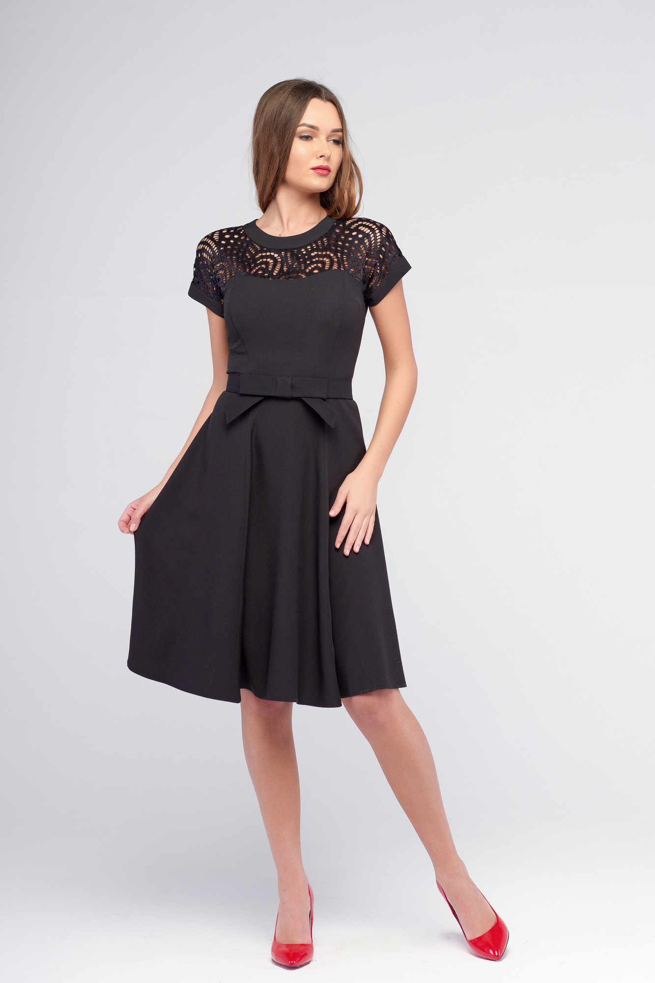 Элегантное и лаконичное платье, выполненное из двух материалов: тонкой костюмной ткани и гипюра.