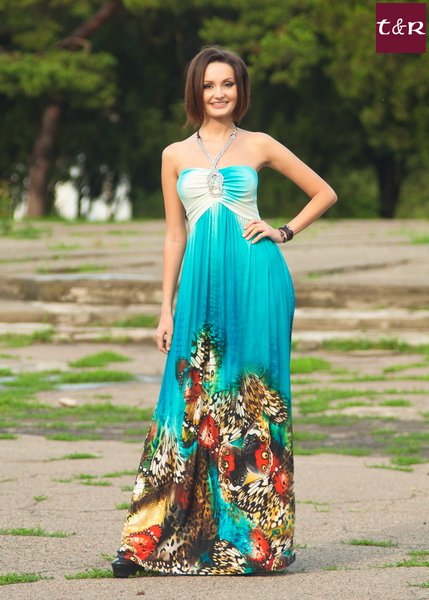 Летнее платье из мягкой ткани холодок. Лиф обтягивающий с оригинальной фурнитурой по центру, которая уходит за шею и завязывается на бант, ткань брителек такая же, как и платье. На спинке множество строчек из нитки-резинки, что позволяет платью идеально лечь по фигуре и хорошо держаться. На юбке красочный принт.