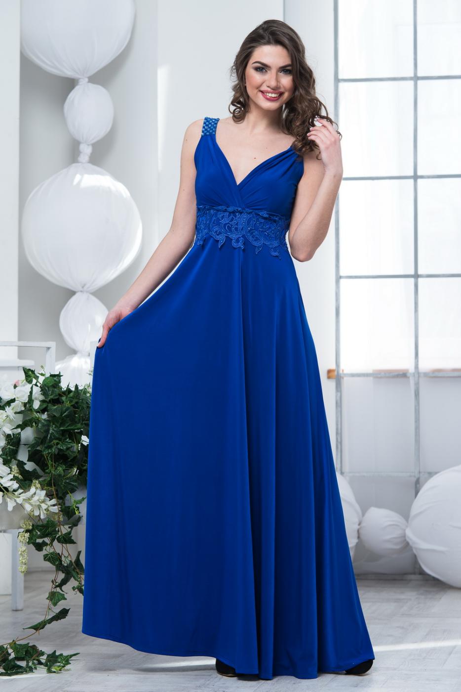 Вечернее элегантное платье в греческом стиле. Платье держится на широких бретелях, которые образуют глубокий вырез в области декольте. Спина открыта. В боковом шве потайная молния. Длина: 150 см.