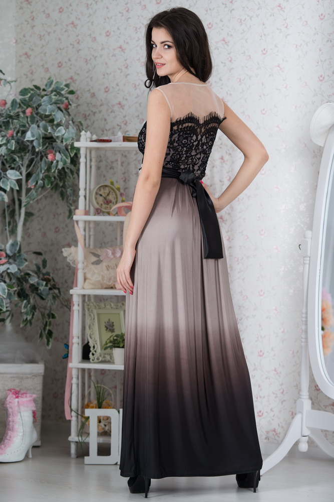 Длинное нарядное платье с оригинальным разрезом спереди, который идеально подчеркивает стройность ног. Верх платья гармонично украшен гипюром и евро-сеткой, что подчеркивает градиент. В комплекте идёт съёмный пояс