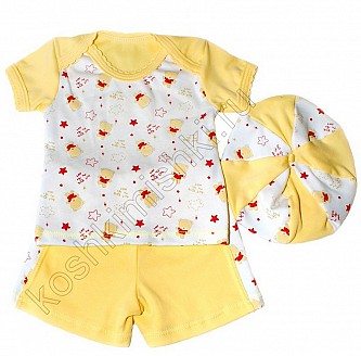 Костюм (футболка, шорты, берет) (интерлок) (рост 68,74,80,86)