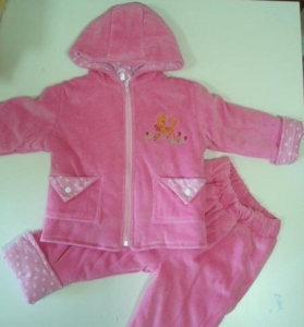 Костюм: куртка на молнии и штаны на резинке. Сверху - велюр, внутри- синтепон, подкладка - х/б. ТМ Пуззики