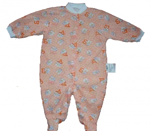Комбинезон с кнопками по центру из мягкого тонкого трикотажа кулир. Рукава с манжетами, воротник-стойка. Воротник и манжеты отделаны мягким трикотажем ластик. Состав: хлопок 100%.